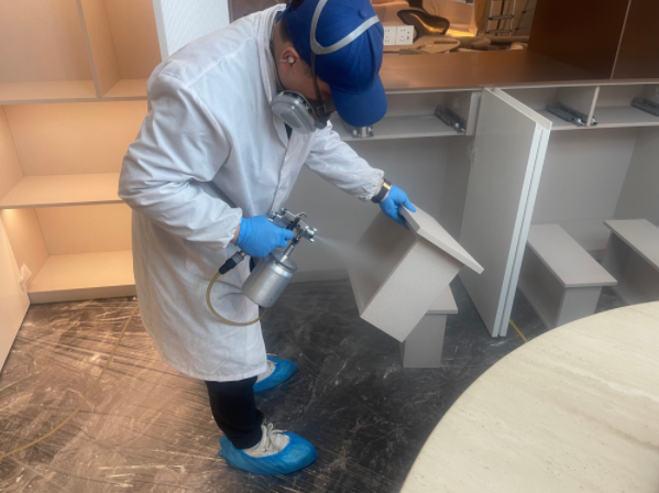 針對該大平層的裝修特點與污染痛點,創(chuàng)綠家拒絕 “一刀切” 式治理,組建專項施工團隊,提前上門完成全空間勘測分析,量身定制「精準(zhǔn)定位 - 分域施策 - 源頭分解 - 長效防護」的一站式除醛方案,全程遵循母嬰級安全標(biāo)準(zhǔn),所用藥劑均通過國家環(huán)保產(chǎn)品質(zhì)量監(jiān)督檢驗中心認證,無毒、無刺激、無殘留,兼顧治理效果與家居保護。